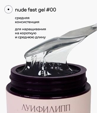 Nude fast gel Профессиональный гель для моделирования ногтей средней консистенции. Незаменимый продукт для мастеров, работающих в быстрой технике: легко самовыравнивается, создавая безупречную форму ногтя без опила. Отлично подходит для укрепления натуральных ногтей, наращивания средней длины. Удобен для работы с гелевыми типсами и наращивания на верхние и нижние формы. Благодаря камуфляжному эффекту, гель эффективно скрывает небольшие изъяны натуральной пластины, создавая равномерное покрытие. Nude fast gel комфортен в работе: не печет в лампе, беспечивает быстрое нанесение, долговечность и безупречный результат.